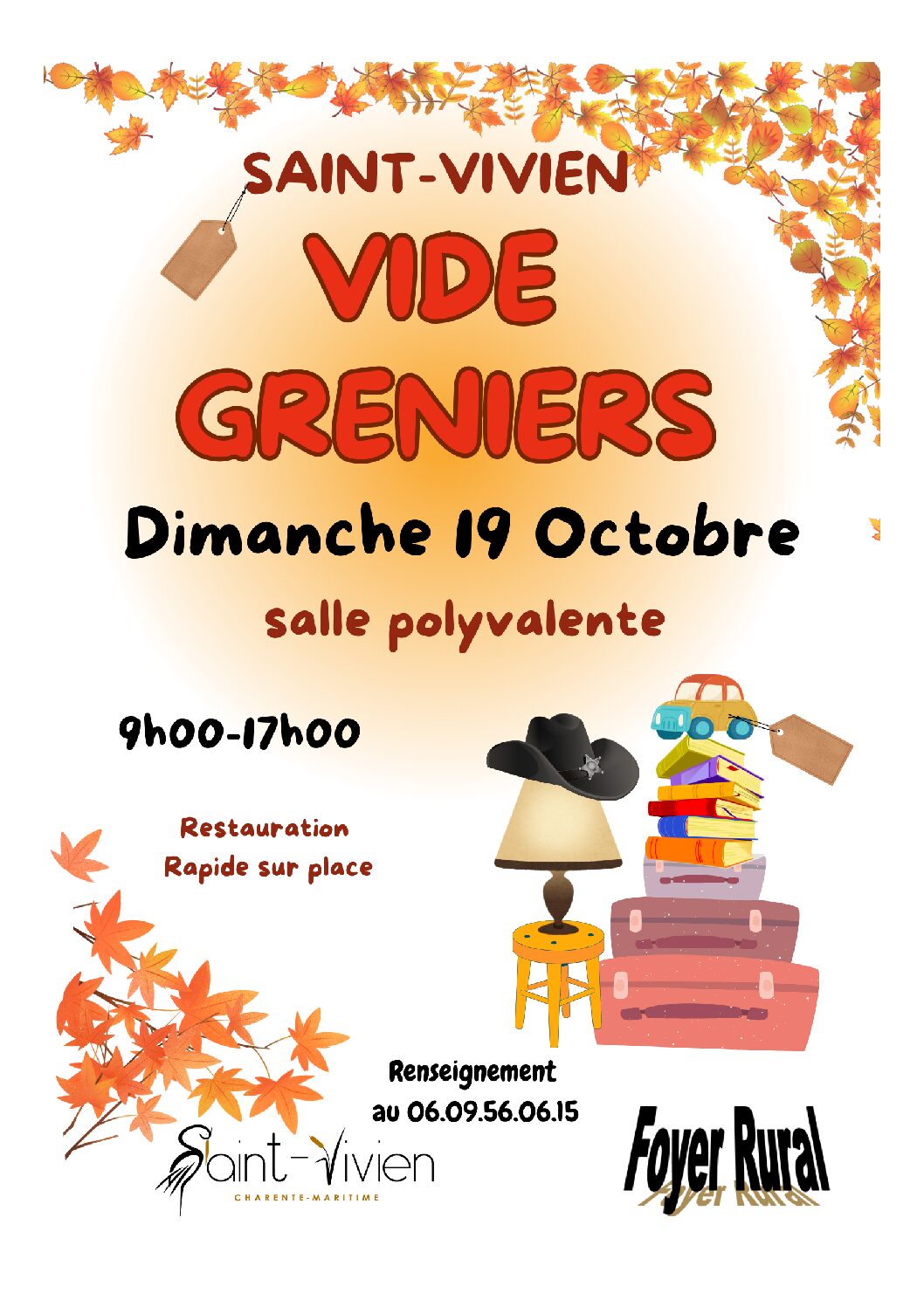 le Vide Grenier du Foyer Rural revient cet automne ! le dimanche 19 octobre 2025 de 9h00 à 17h00 à la salle polyvalente